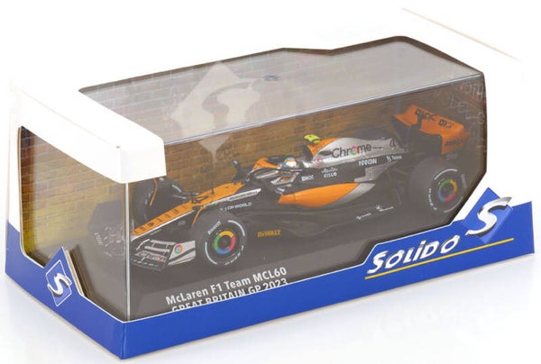 McLaren F1 Team MCL60 - Lando NorrisGreat Britain GP 2023Merk: SolidoSchaal: 1:43Kleur: Oranje (Papaya) / Zwart / ZilverArt.nr: 4317801