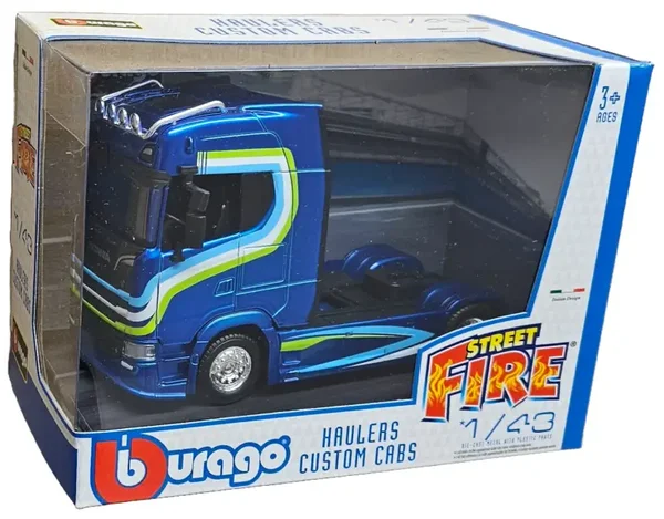 Scania S730 Highline CabMerk: BburagoSerie: Haulers Custom CabsSchaal: 1:43Kleur: Blauw / Wit / GroenArt.nr: 18-32206